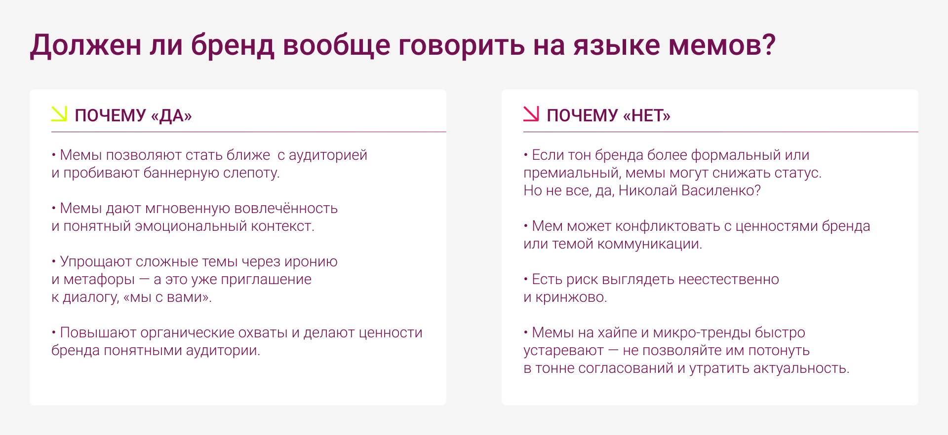 Отдельно стоит помнить: мем — это не тренд, а язык.