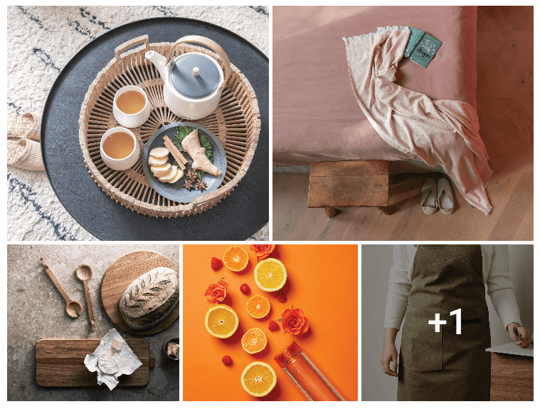 Детали интерьера, аксессуары, посуда и текстиль для сервировки, а также сумки для сортировки мусора, подарочные комплекты: ежедневники, термостаканы, ручки в эко-коробках и сумках, головоломки из дерева FSC® и т.д.