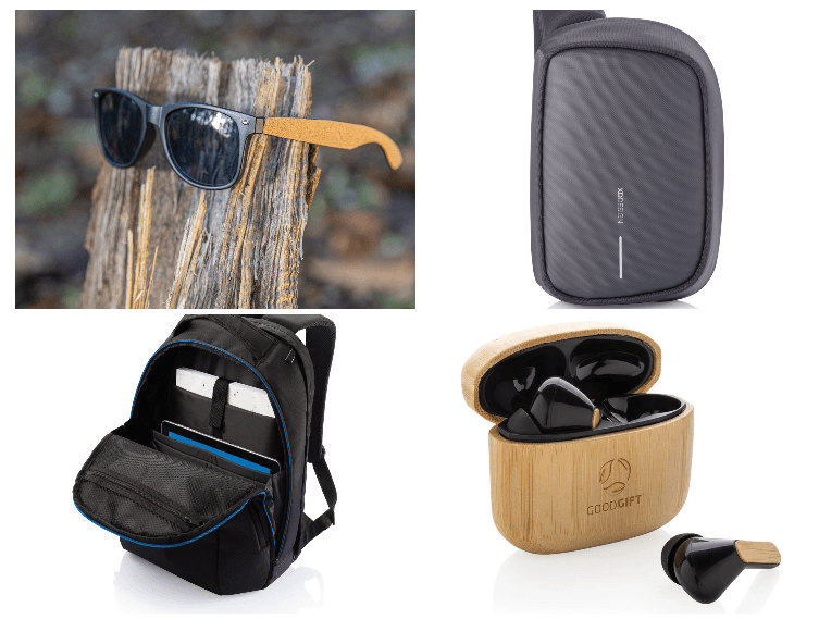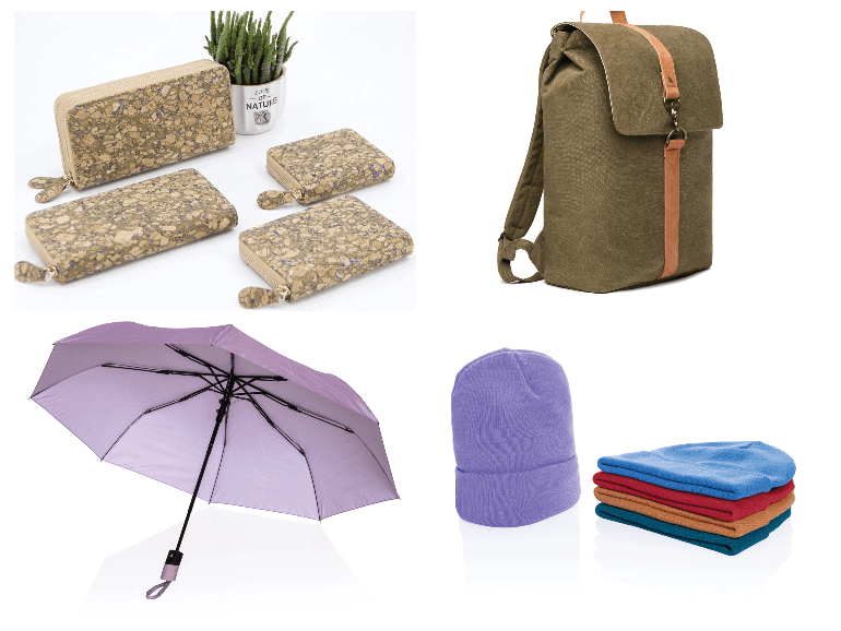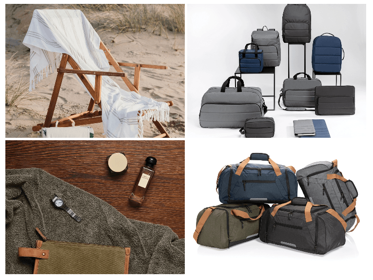 От дорожных сумок из RPET AWARE™ до пледов для пикника из rPET GRS, сумок-холодильников из RPET AWARE™, часто с декором из натуральных материалов – от пробки, канваса, хлопка и пр. И такие детали как фонарики с аккумуляторами, наушники и пр. из переработанного пластика.