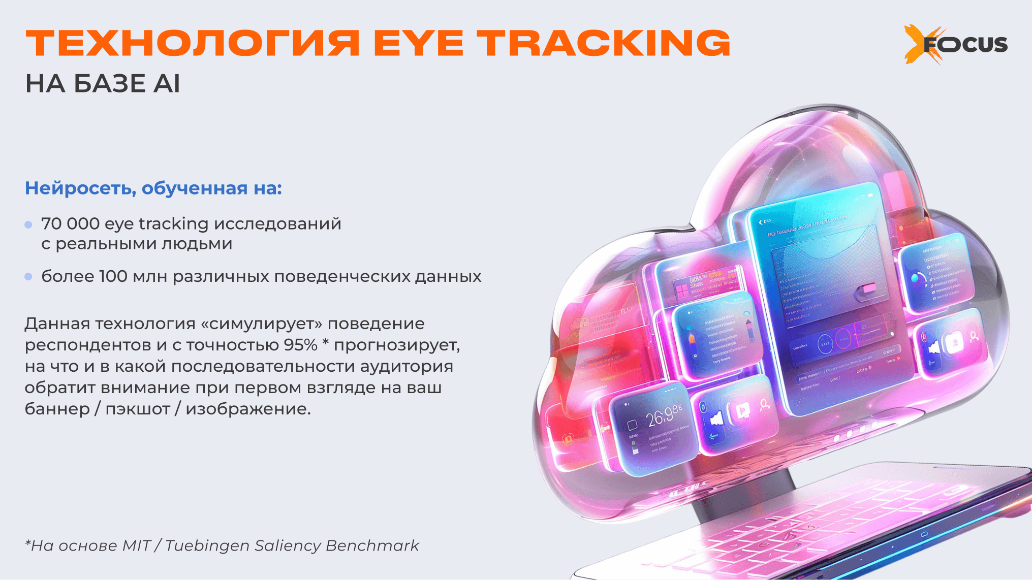 Айтрекинг, встроенный в систему AICAP от XFocus, делает возможным создавать креативы, которые с первых секунд удерживают взгляд и ведут пользователя к целевому действию. Такой подход превращает визуальные гипотезы в подтвержденные данные и реальные результаты.
