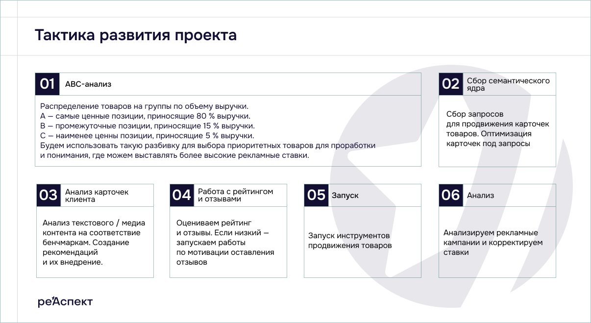 Для системного результата необходим партнер, способный управлять проектом на всех этапах. В агентстве «Реаспект» мы обеспечиваем планомерное внедрение стратегий, контроль показателей и регулярное сопровождение, позволяя работать с маркетплейсами эффективно, соблюдая сроки и достигая прогнозируемого роста продаж. Обсудим ваш проект и задачи?