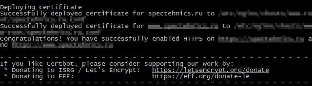 Приступаем к непосредственному получению бесплатного сертификата и настройке https. Если вы используете nginx, выполните:
