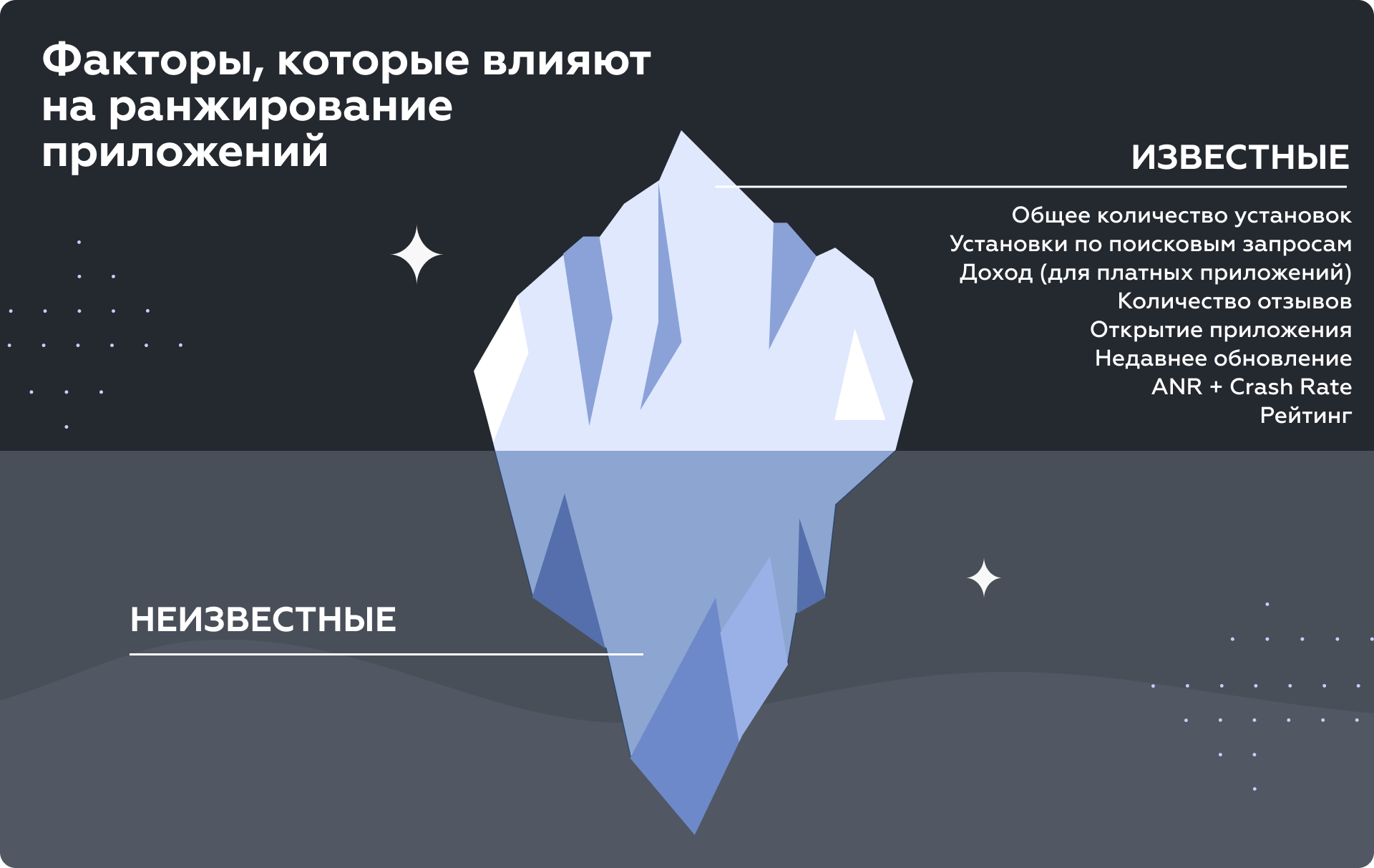 За годы практика и эксперименты позволили ASO-специалистам выявить только некоторые факторы, влияющие на видимость в сторах. Однако точно предсказать результат оптимизации все еще невозможно — слишком много переменных остается вне контроля.
