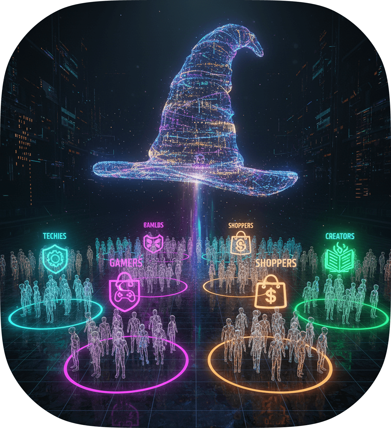 Собрав все данные, ИИ не просто делит всех на “мальчиков” и “девочек”. Он создает микро-гильдии! Это как в “Гарри Поттере”, только вместо факультетов — группы по интересам.