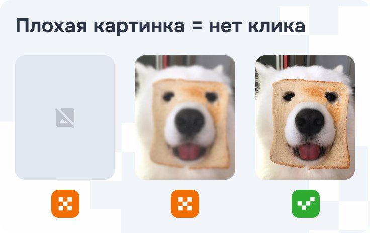 Заглушка «нет изображения» — тоже плохо. Алгоритмы «Яндекса» и VK видят, снижают приоритет показа. Зачем показывать товар без картинки, если у конкурентов фото есть?