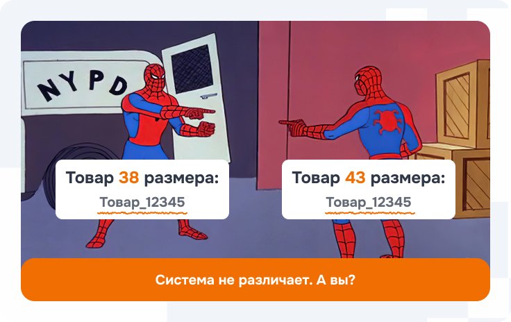 Другая проблема: одинаковые ID у разных позиций. Случается с модификациями одной модели, размерами, цветами. Проявляется в том, что каждой паре кроссовок разного размера, но одного цвета не присвоить уникальный ID. Система покажет рекламу только по первому размеру, остальные проигнорирует.