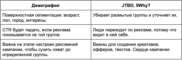 JTBD (Jobs-to-Be-Done) меняет фокус с «кто ты есть» на «что ты пытаешься сделать». Этот метод помогает перевести взгляд на продвигаемый продукт со своей «колокольни» на то, как его видит ЦА.