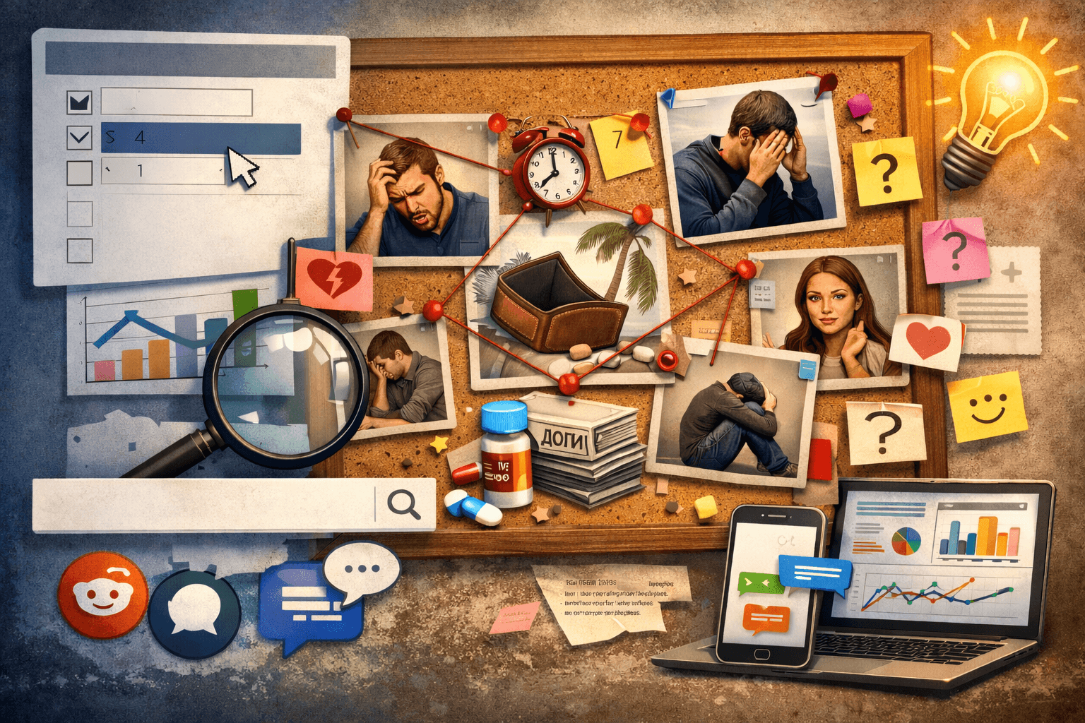 Инструменты из арсенала маркетолога — Wordstat, Google Trends, форумы, чаты, опросы — те самые, которые вытаскивают боли из тени.