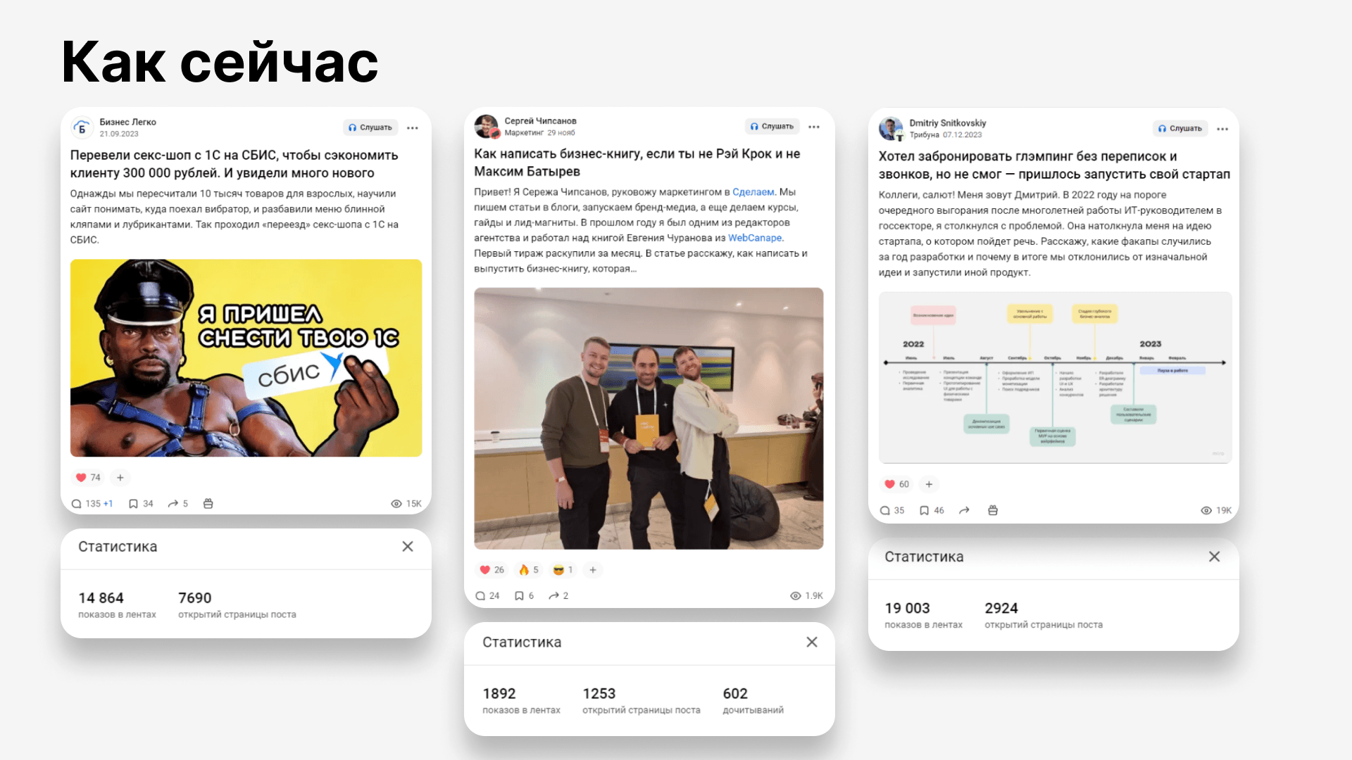 Привет! Я Сережа Чипсанов, руковожу маркетингом в Сделаем. Мы пишем статьи для компаний и публикуем их на разных площадках. До недавнего времени vc.ru была основной площадкой для нас и наших клиентов. Сейчас уже нет. Охваты упали, публикации уже не так эффективны как раньше. Сейчас докажу вам это на нашей статистике, и расскажу, как мы с этим работаем.
