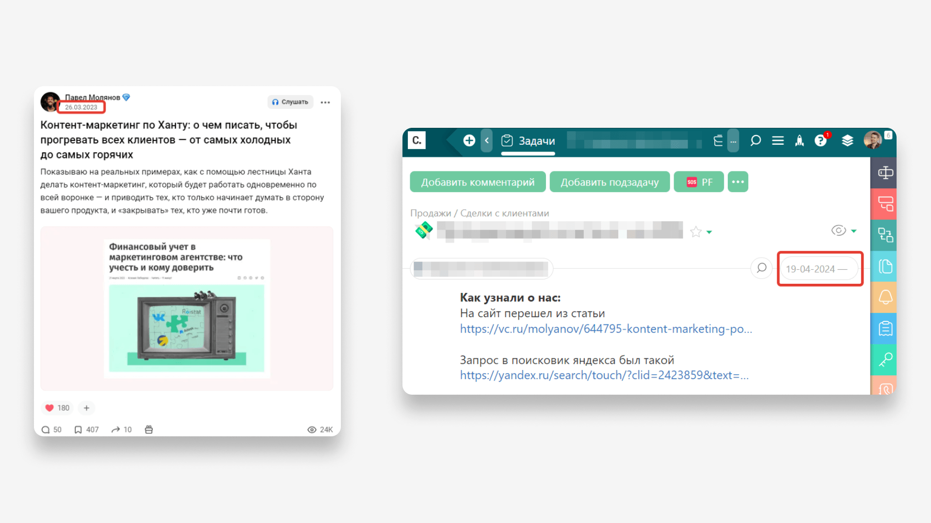 Есть отложенный эффект. Если статья на VC написана на актуальную тему и имеет хоть какой-то SEO-потенциал, то она будет получать просмотры из поиска. Статью могут прочитать через месяц, полгода, год. Например, статья про контент-маркетинг по Ханту, которую мы опубликовали на VC в марте 23-го года, привела к нам лид в апреле 24-го.