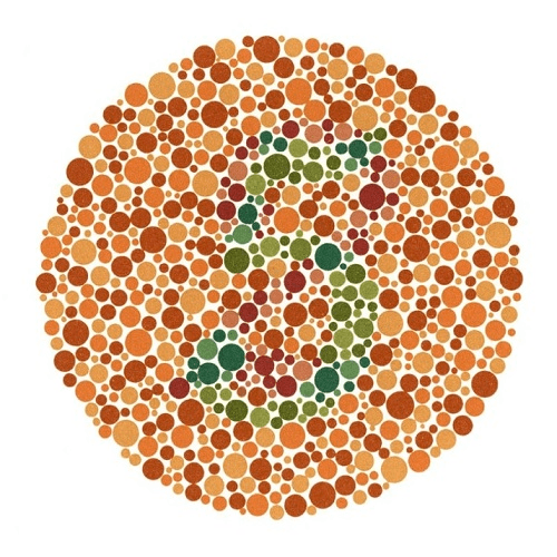 К особенностям восприятия цветов относится дальтонизм. Такие люди не различают оттенки, обычно красного и зеленого, но могут быть и другие в зависимости. Например, человек с дальтонизмом может не увидеть цифру 5 (тест Ишихара):