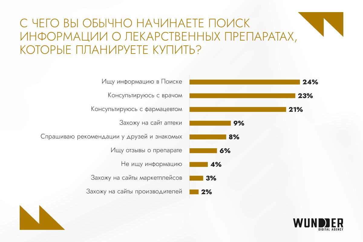 В топе запросов – витамины и БАДы, обезболивающие, антибиотики, а также препараты для лечения глаз и ЖКТ. Поиск становится одним из главных источников информации наряду с советом врача или фармацевта. Поэтому брендам крайне важно обеспечивать максимальную видимость в поисковых системах.