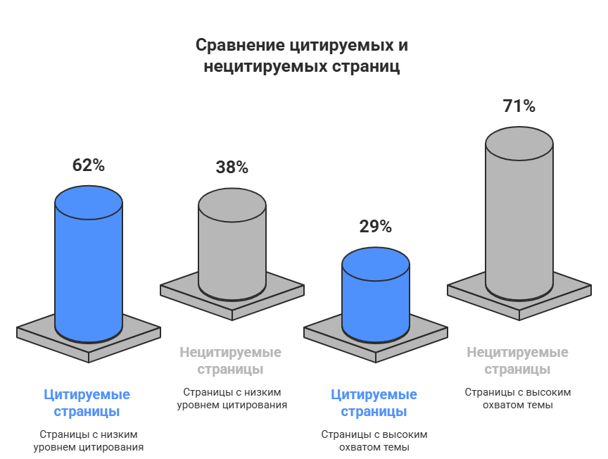 Сравнительная диаграмма характеристик контента — цитируемые vs нецитируемые страницы