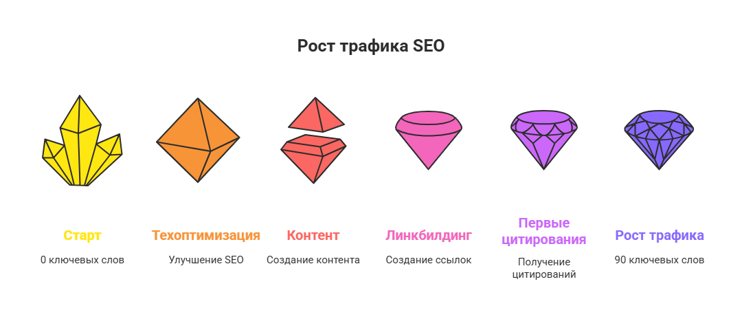 Успешные кейсы (например, рост AI-трафика на 2300%) демонстрируют, что результат достигается только комбинацией: качественный всеобъемлющий контент + техническая оптимизация + естественный линкбилдинг + развитие брендового присутствия.