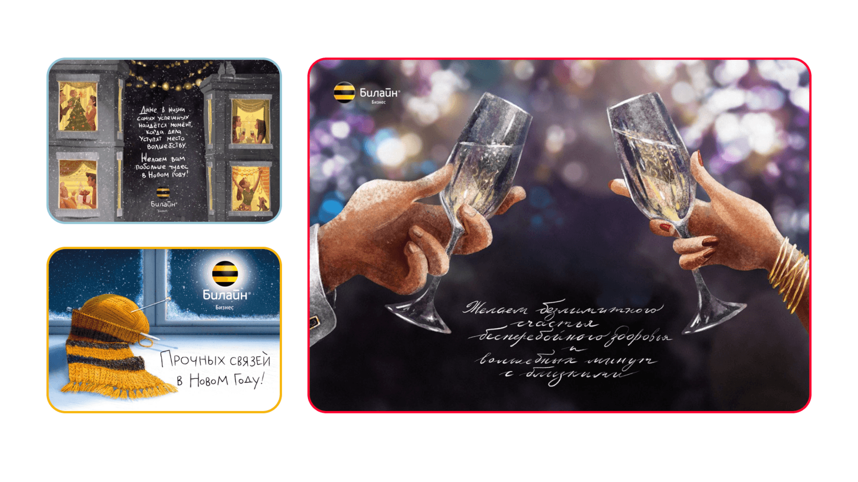 Ещё есть вариант: поздравить своих клиентов и сотрудников теплыми словами, а сохраненные деньги передать на благотворительность. Возможно, это не очень оригинальная идея, зато самая добрая. Получая письма о том, что деньги пошли не на ящик шампанского, а на доброе дело, люди скорее всего испытают приятные эмоции. Кстати, открытки для благотворительных фондов мы рисуем бесплатно.