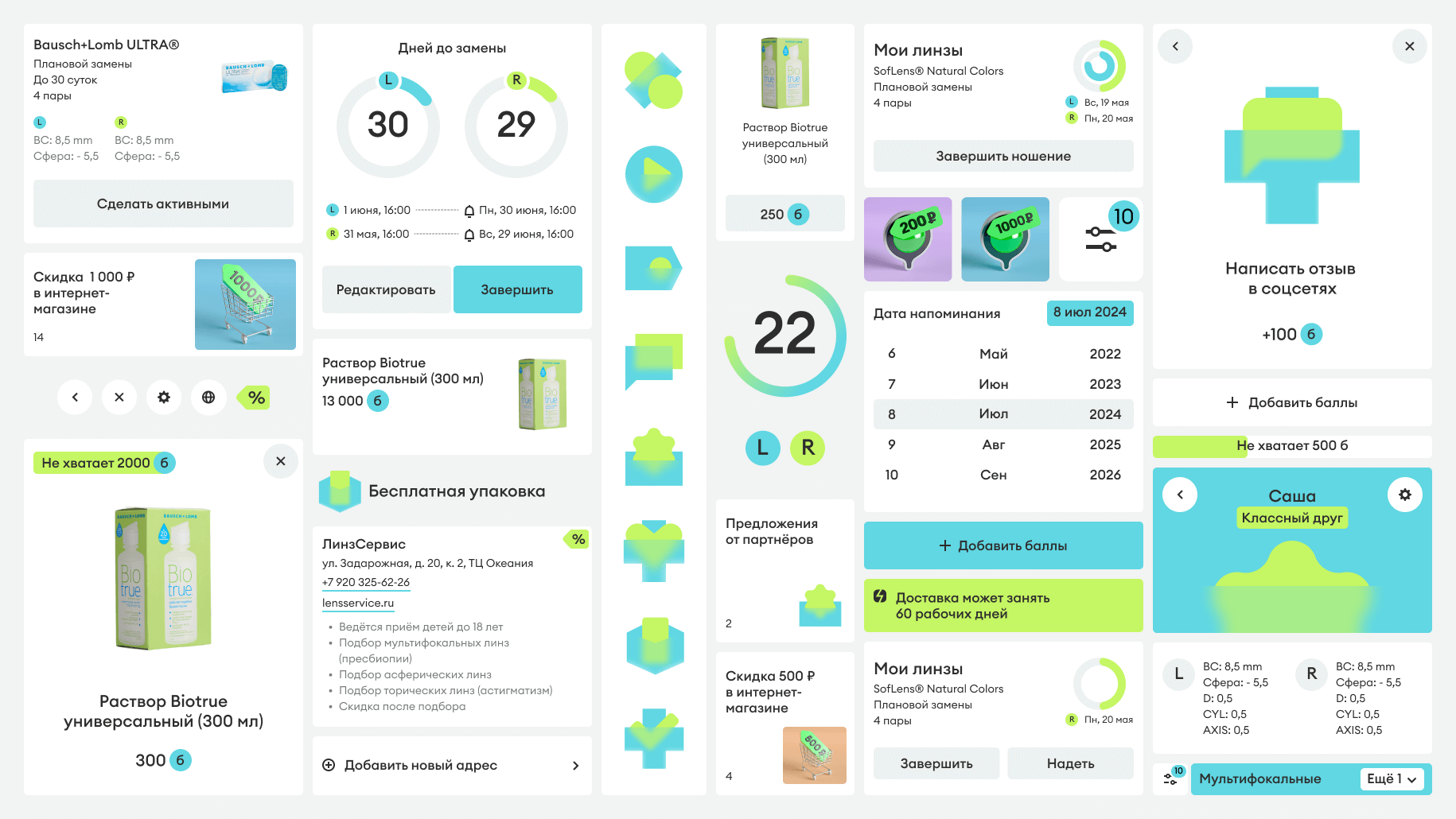 Так за разработкой приложения программы лояльности к нам обратилась команда производителя контактных линз Bausch+Lomb. У компании уже была программа лояльности, но работала только на сайте. Команду клиента не устраивал User Flow, поэтому нашей основной задачей было переосмыслить опыт использования приложений для здоровья, пересобрать текущие сценарии и внедрить в приложение полезные для пользователей функции.
