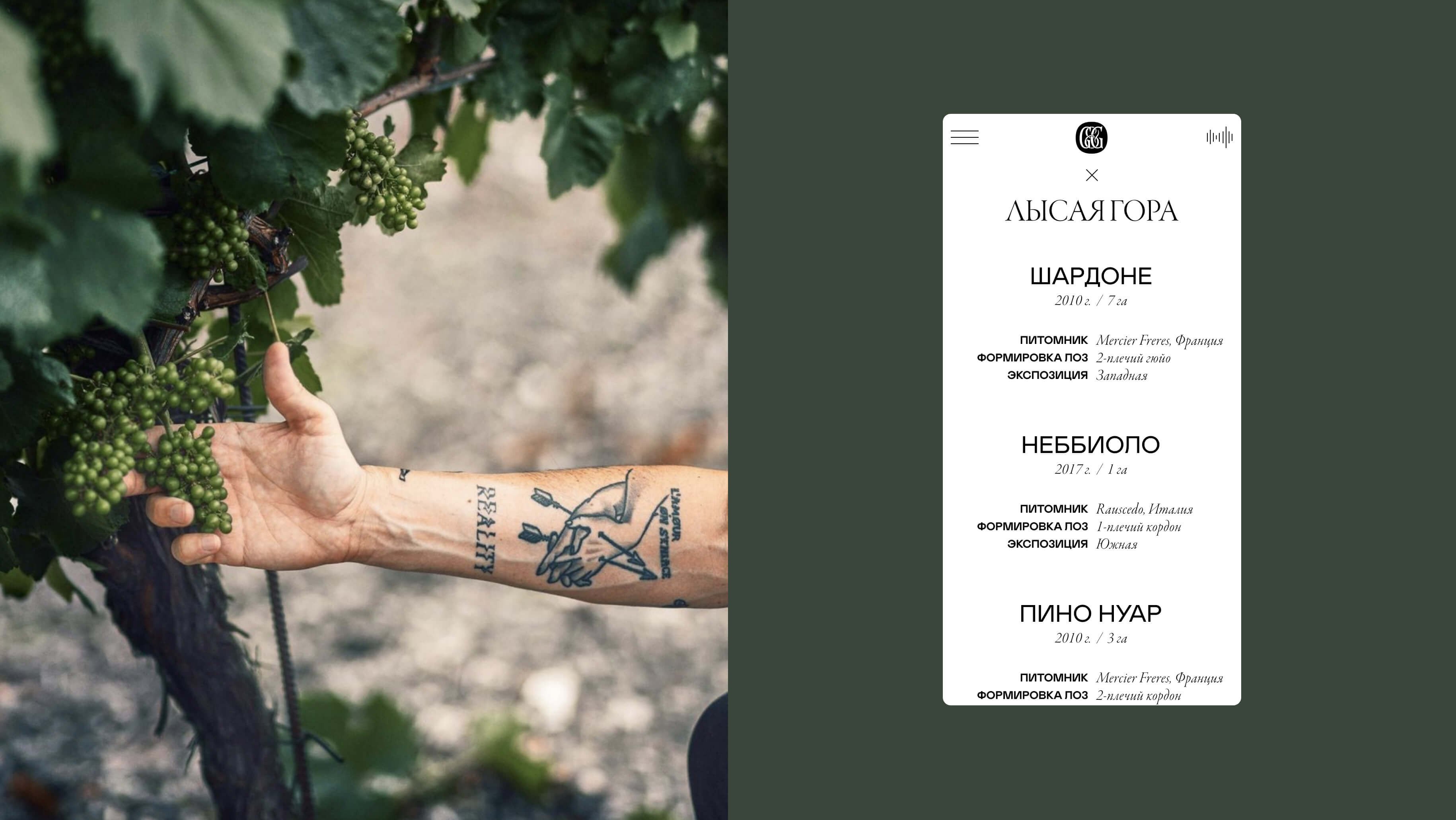 Например, для сайта Galitskiy&Galitskiy мы искали способы передать красоту и атмосферу Краснодарского края так, будто человек действительно находится на винодельне. Для этого мы сделали множество фотографий и видео из заповедника «Красная горка», где расположены виноградники. А ещё записали звуки окружающей природы.