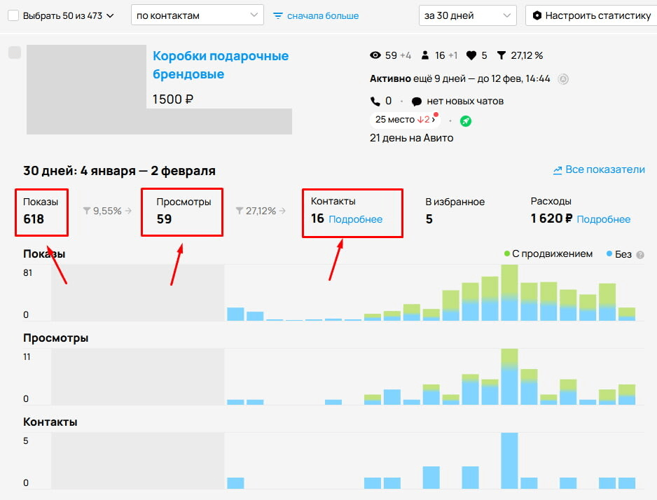 Пример воронки конкретного объявления на Авито