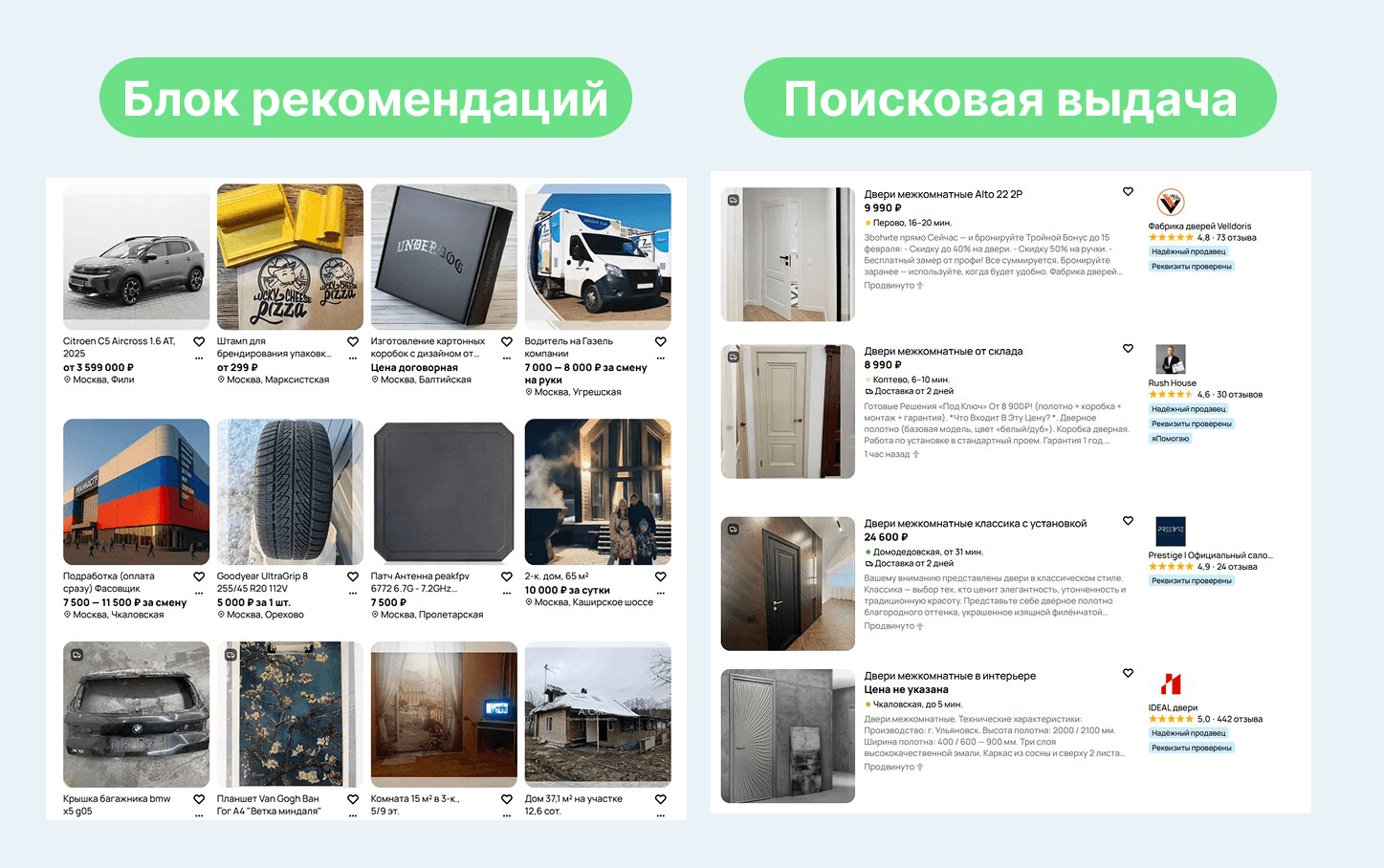 Авито не показывает все объявления одинаково. Алгоритмы ранжирования анализируют множество сигналов, но ключевыми на этом этапе считаются релевантность и качество.
