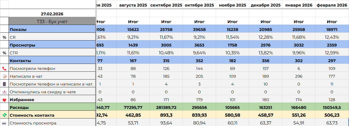 Пример статистики с Авито по одному из проектов агенства