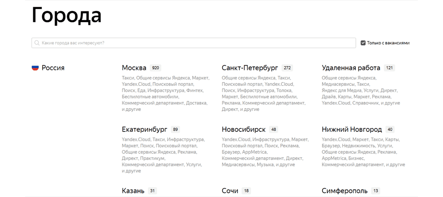 Если компания ведет найм по регионам — стоит добавить фильтрацию по городам.