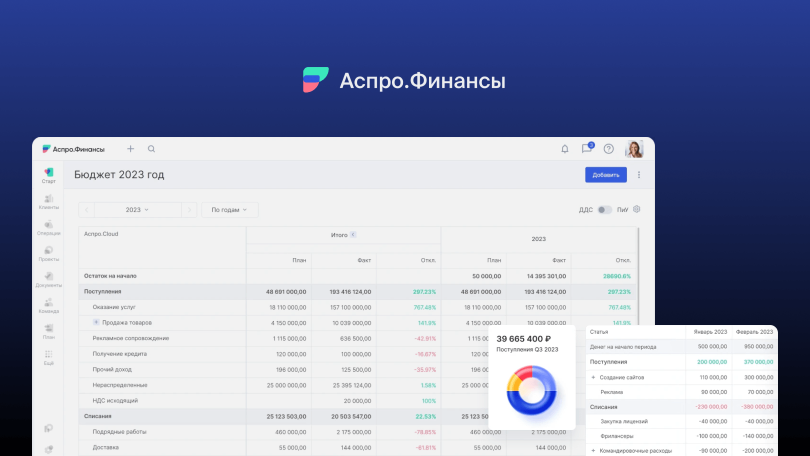 Аспро.Финансы — решение для управления рентабельностью. Платформа лучше подходит для агентств, IT-команд, консалтинга и студий. Она позволяет не просто видеть движение денег, но и считать прибыльность каждого проекта и клиента, управлять бюджетами интернет-магазина и связывать финансы с загрузкой команды. Это инструмент для более глубокого анализа и принятия решений, нацеленных на рост маржинальности.