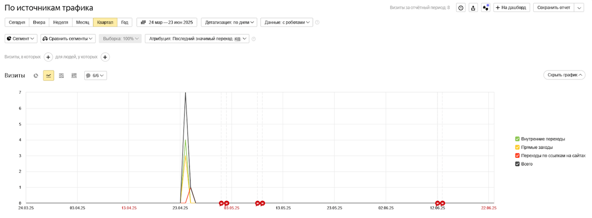 Если количество посетителей на вашем сайте растет, это хороший сигнал, что рекламные кампании или другие усилия приводят к увеличению трафика. Однако важно не только отслеживать рост посещаемости, но и качество трафика — если количество посещений увеличилось, но конверсии остаются низкими, это может означать, что вы привлекаете нецелевых пользователей.