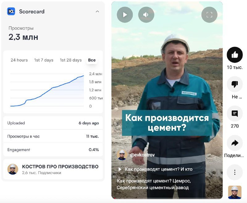 Ролик не считаю идеальным. Хук (завязку) можно было сделать мощнее — например, что-то зрелищное вроде "купание в клинкере". Из-за съемки в горизонтали некоторые кадры в вертикальном формате вышли слишком приближенными. Но несмотря на это — результат есть.