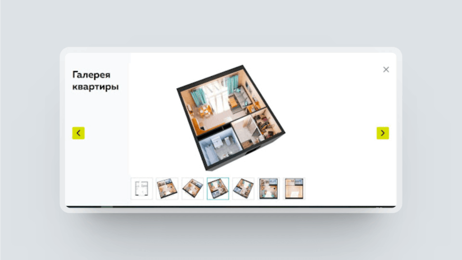 Более технически сложное, но вместе с тем и более эффектное решение — 3D-визуализация планировок. Посетителю сайта даже не нужно подключать воображение — все уже сделано за него. Вот как это реализовано на сайте ЖК «Яркий» в Казани: