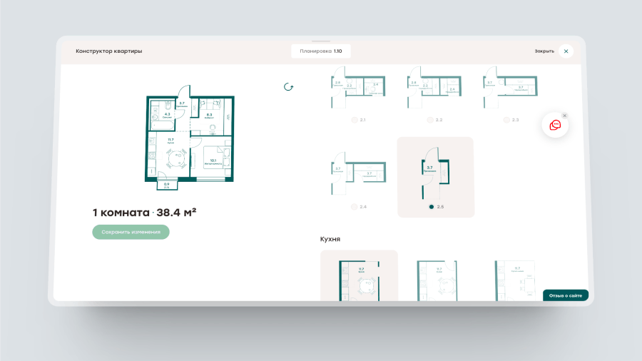 Страница «Конструктор планировок» на сайте ЖК «Равновесие»