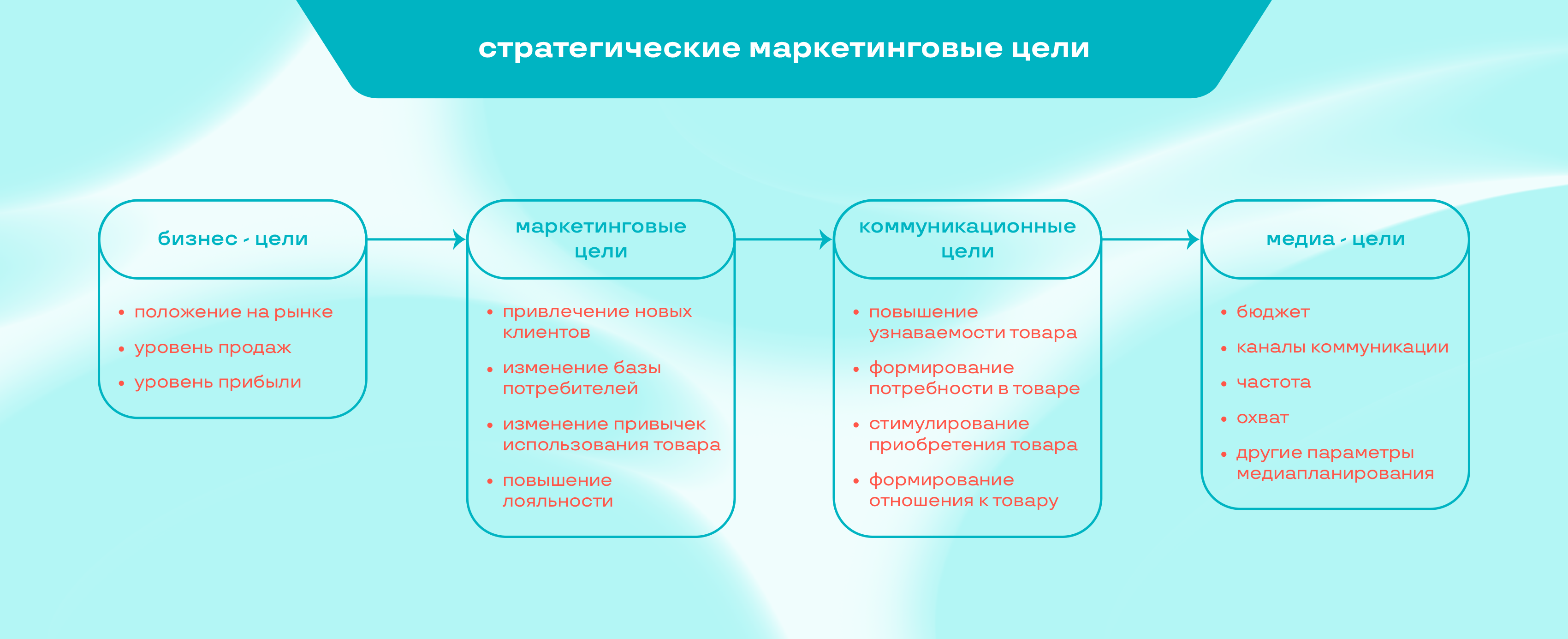4. Медиа-цели выражаются в формате ключевых показателей, каналов коммуникации и прочих показателей. Например: