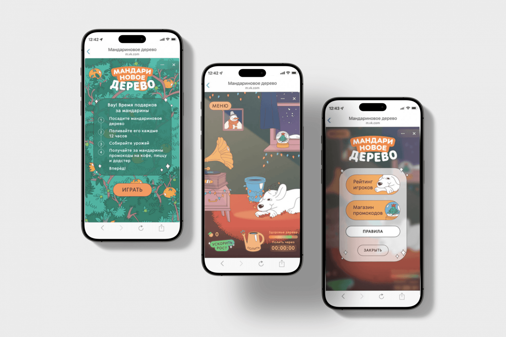 Элементы промо-игры "Мандариновое дерево" для платформы VK