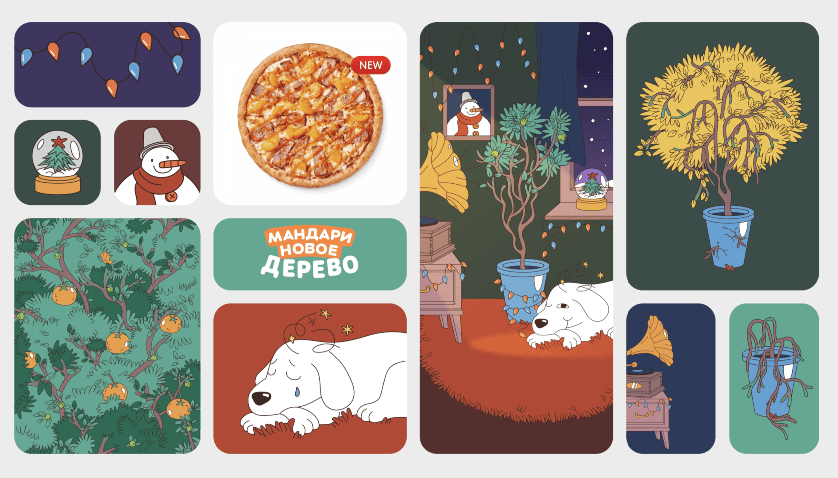 Стоит заметить, что на год раньше команда Dodo уже успела отличиться оригинальностью, выпустив пиццу со вкусом Оливье. Набор ингредиентов был соответствующий, но и в тот раз поклонники бренда остались довольны. Чуть забегая вперед, хочу рассказать, что перед последним новым 2024 годом в Казахстане вышла пицца со вкусом кебаба, к чему мы имели удовольствие быть причастными. Об этом кейсе чуть позже, а сейчас вернемся к мандариновому дереву.