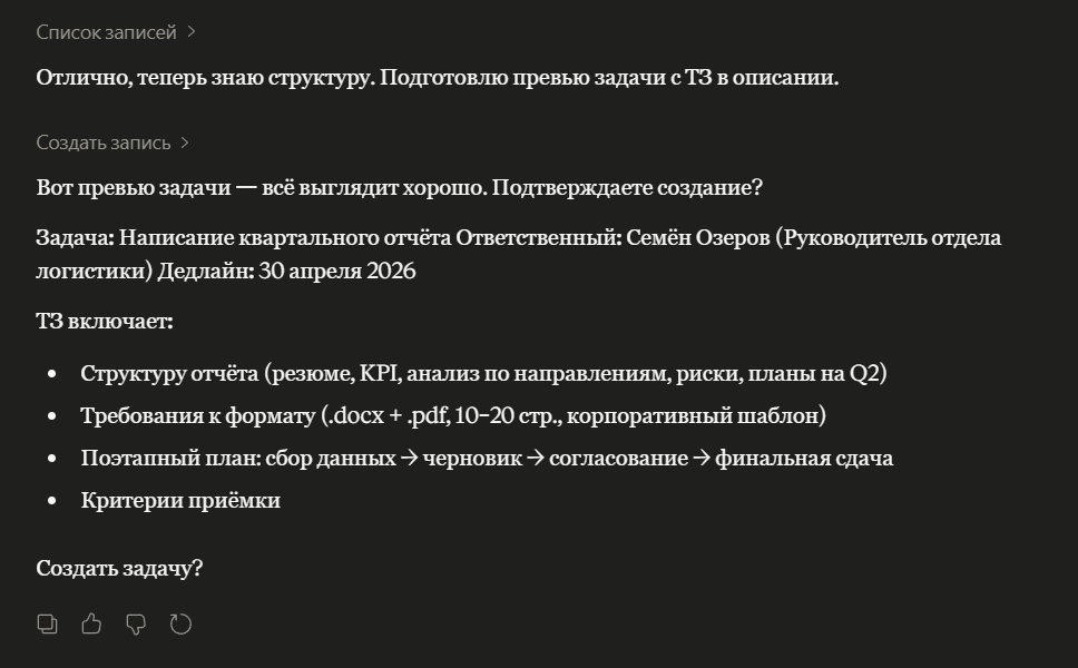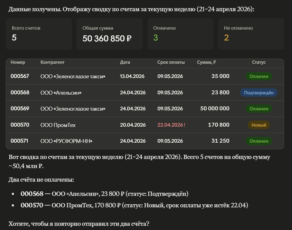 На практике это означает, что ИИ работает не отдельно, а с реальными данными компании внутри системы.