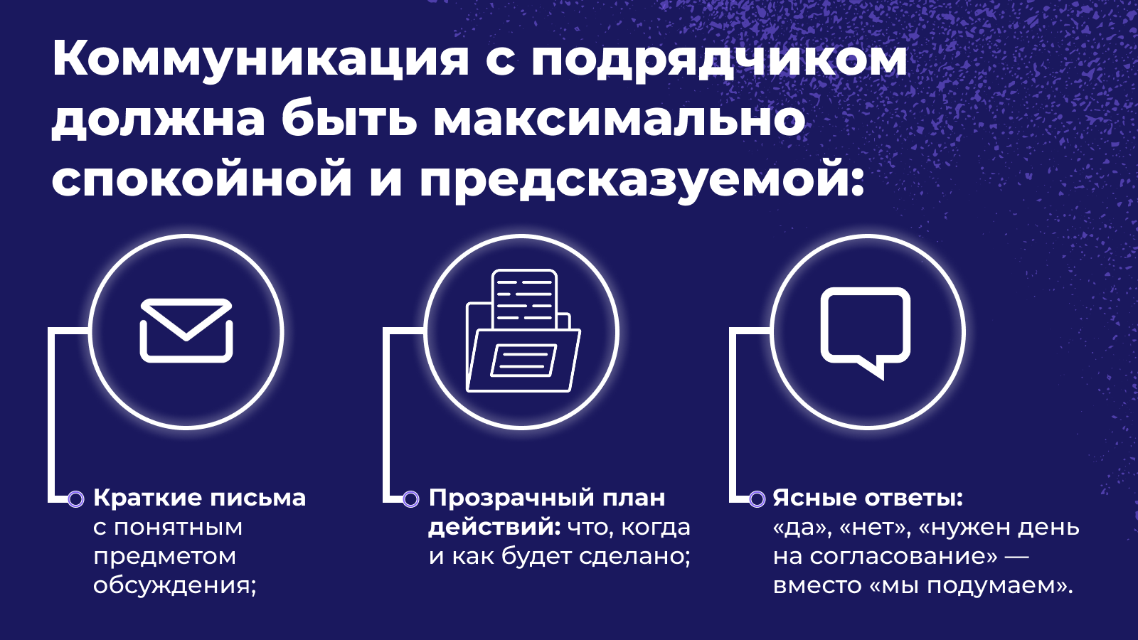 Коммуникация с подрядчиком должна быть максимально спокойной и предсказуемой: