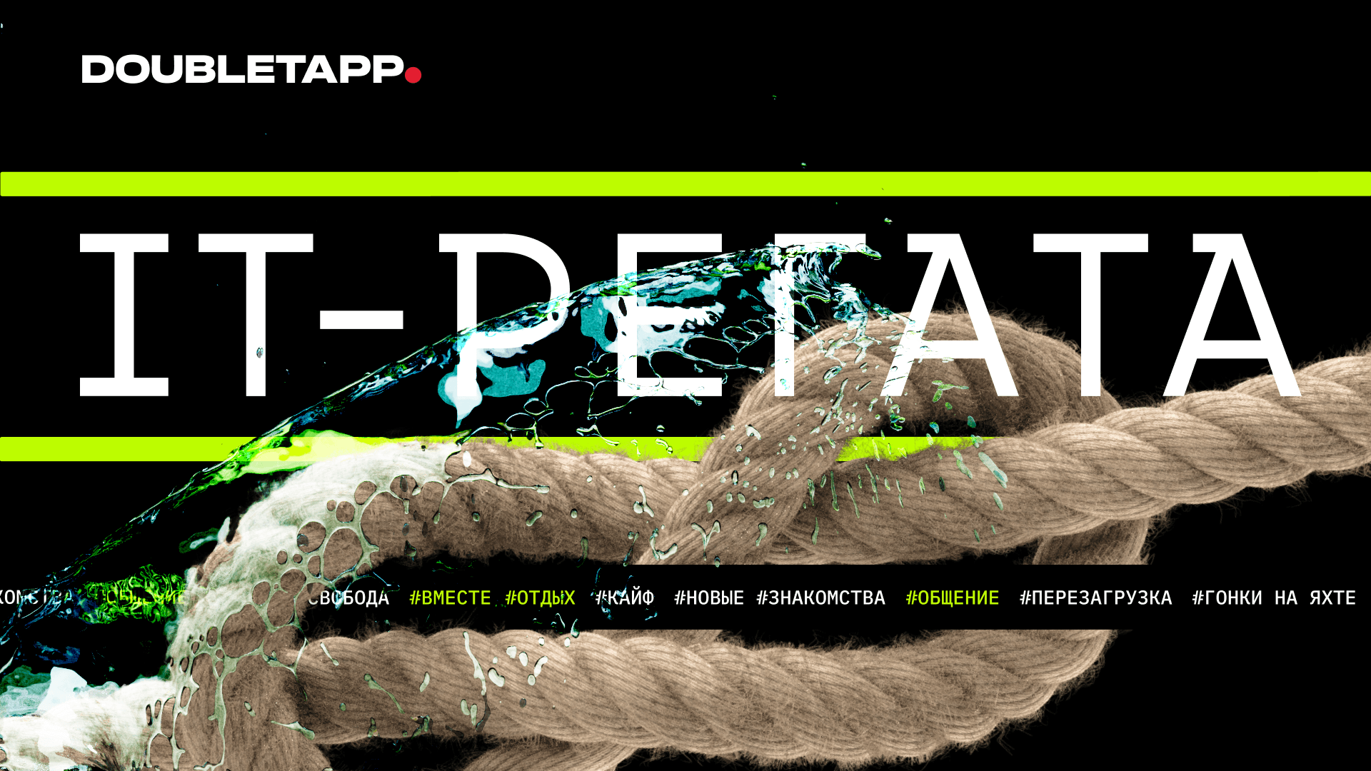 IT-Регата пришла в Doubletapp за обновлением. Условным — освежить, подправить, аккуратно осовременить. Но мы сделали шаг в сторону от запроса — и предложили совсем другую эстетику: неочевидную, яркую, местами даже брутальную. Сначала это удивило. А потом стало визитной карточкой ивента.