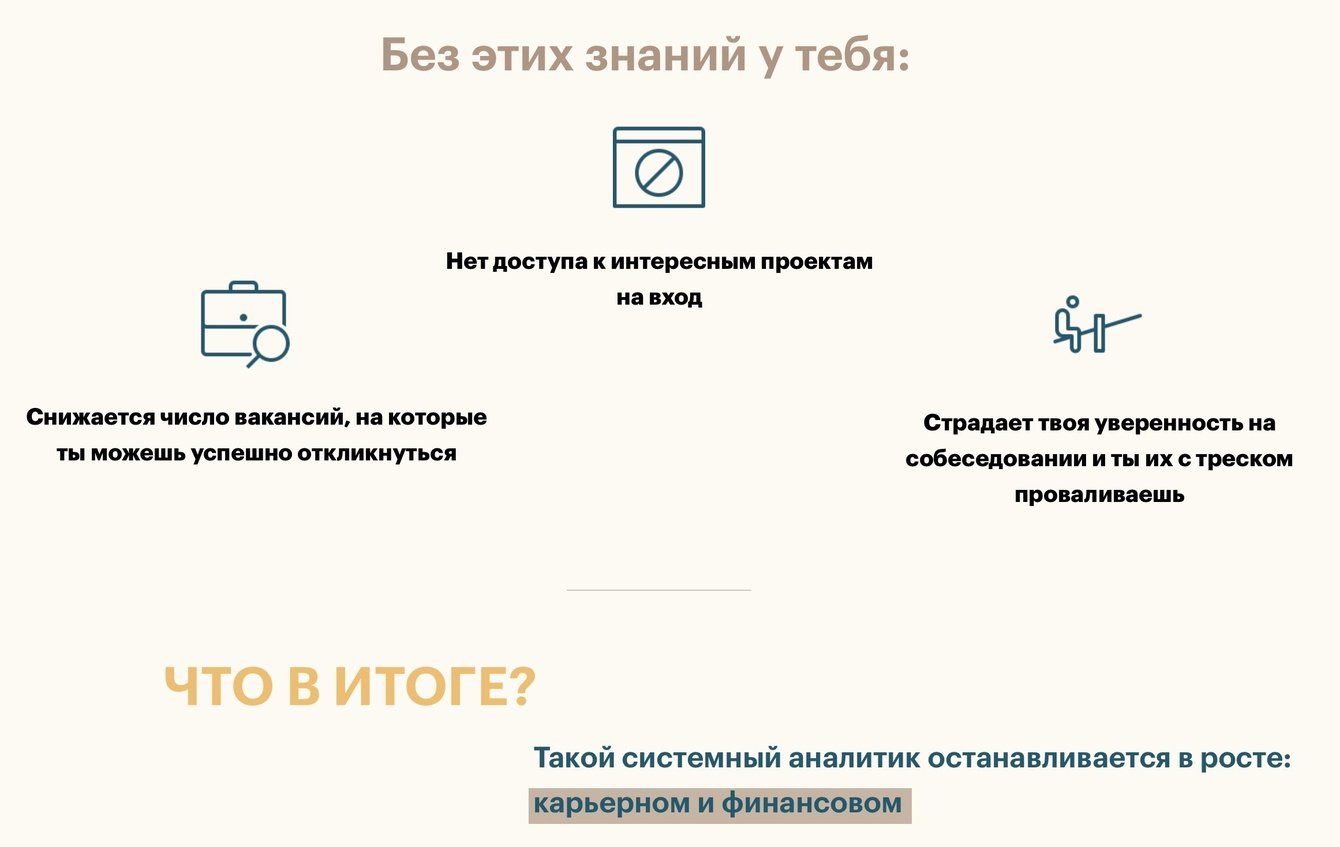 Для обоих курсов мы собрали текстовые "скелеты" их презентации. Такие "скелеты" стали основой технического задания для разработчика лендинга на Тильда и постов в соцсетях, содержащих информацию о продукте и подводящих подписчиков к покупке курсов Александра. Команда Александра использует их до сих пор.
