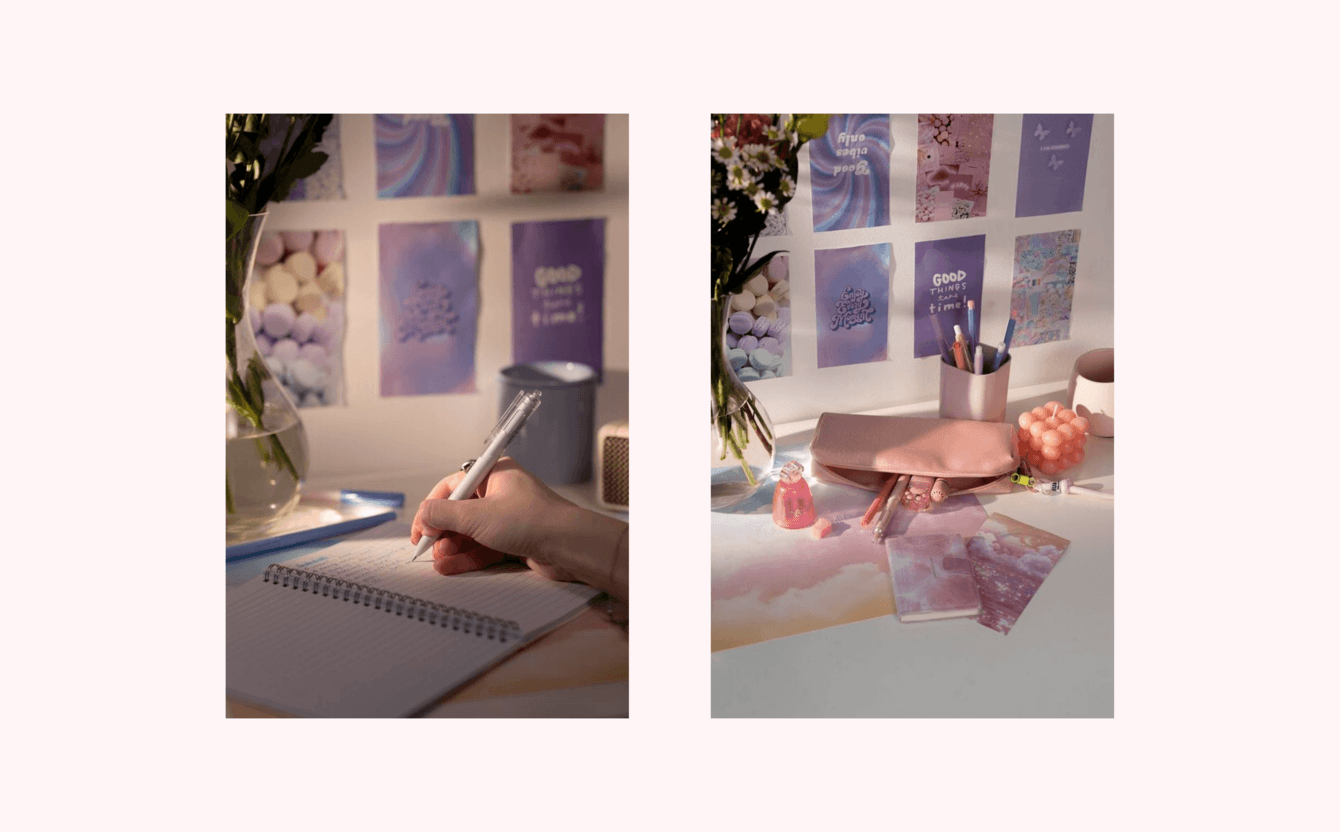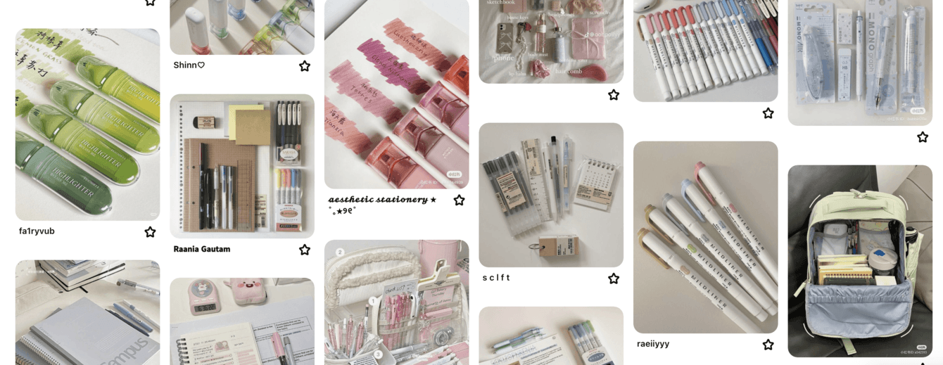 Те школьники и студенты, которые хотят канцелярию в пастельных тонах, часто организуют хранение на рабочем столе. Pinterest нужен им для вдохновения и выбора подходящего антуража — это скорее приятный ритуал, чем обычный скроллинг маркетплейсов.