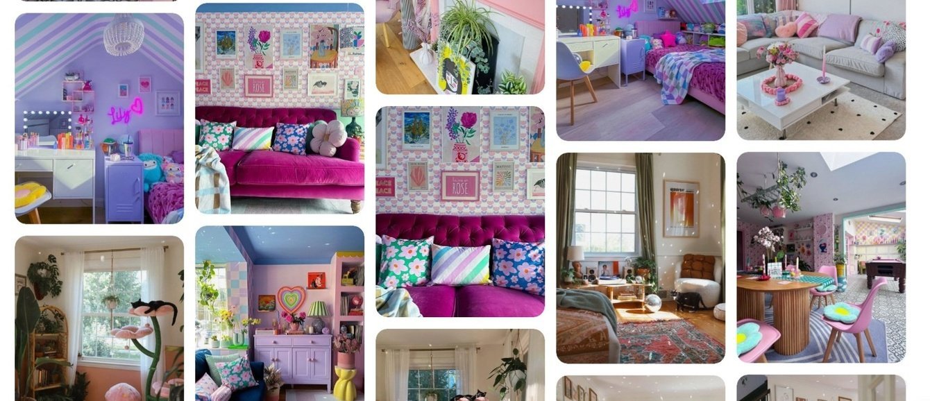 Так выглядит наша доска с идеями по дизайну комнаты для ЦА — акцентные детали, сочетания цветов в мебели