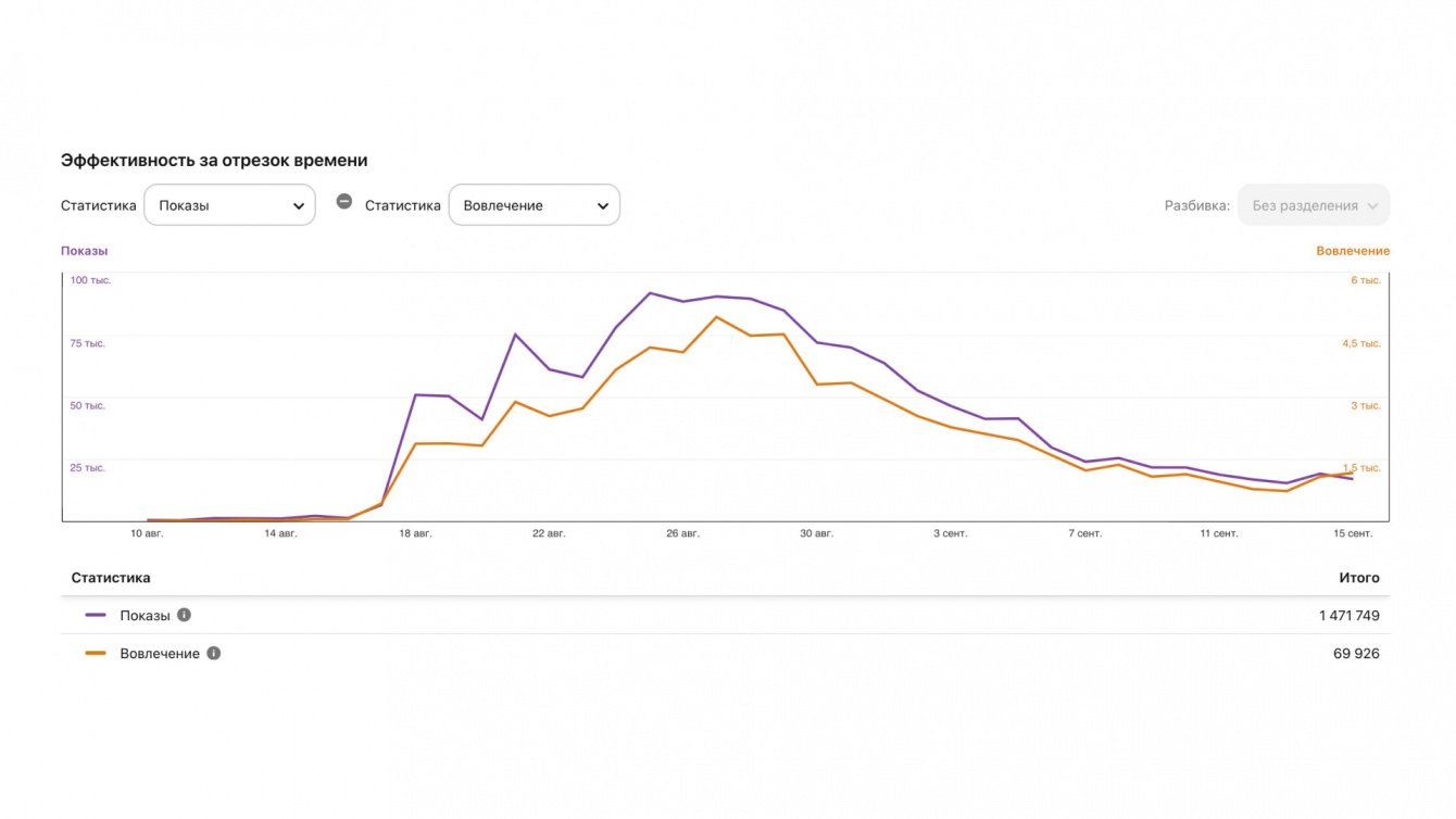 — Канцтовары имеют высокую сезонность, что отразилось на охватах: явный всплеск интереса в августе и начале сентября, после чего охваты значительно упали.