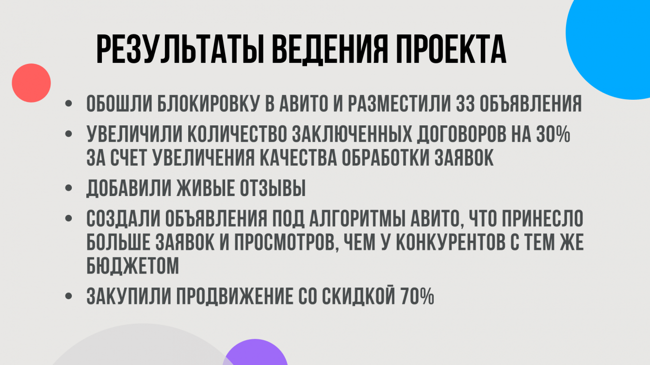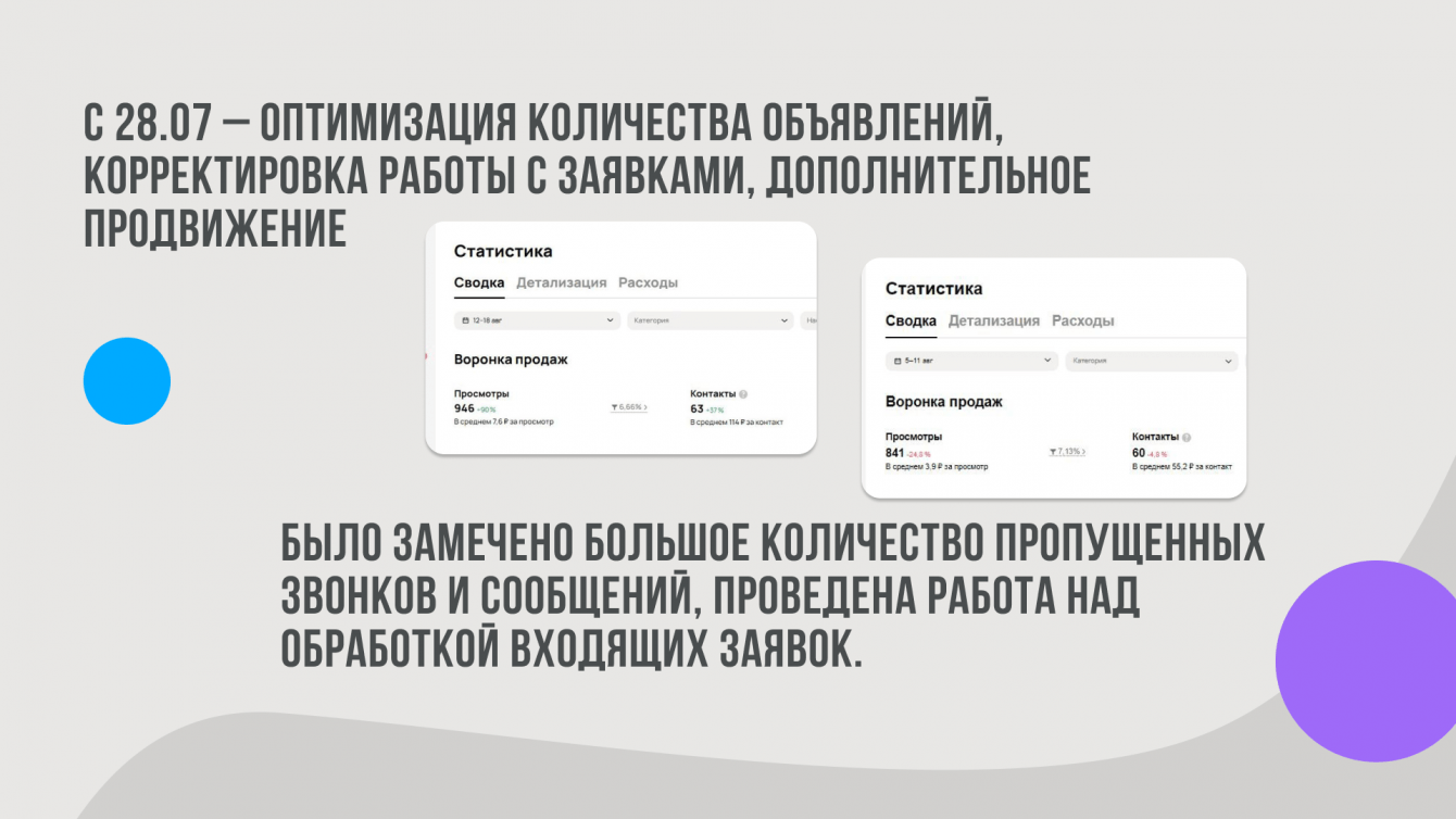 Работа с прошлым авитологом не принесла отклика, что и стало основной проблемой в начале нашей работы. Потому что доверие к площадке было подорвано, а вложенные средства не оправдали себя.