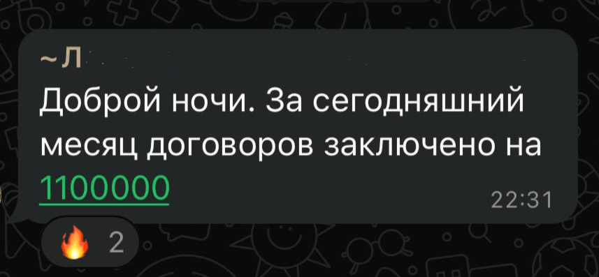 Так за начало месяца (август) было заключено договоров на 1100000 рублей.