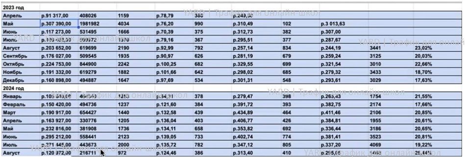 Всем привет, меня зовут Алексей, я руководитель рекламного агентства YARD. Мы приводим трафик для онлайн-школ.В сегодняшнем кейсе по продвижению расскажу о том, как мы вывели на окупаемость онлайн-школу с курсами по видеомонтажу. И продолжаем приносить прибыль х2.Особенно полезно будет онлайн-школам, у кого постоянно меняются трафик-менеджеры, подрядчики, и не получается держать цену лида, при этом работая в плюс.