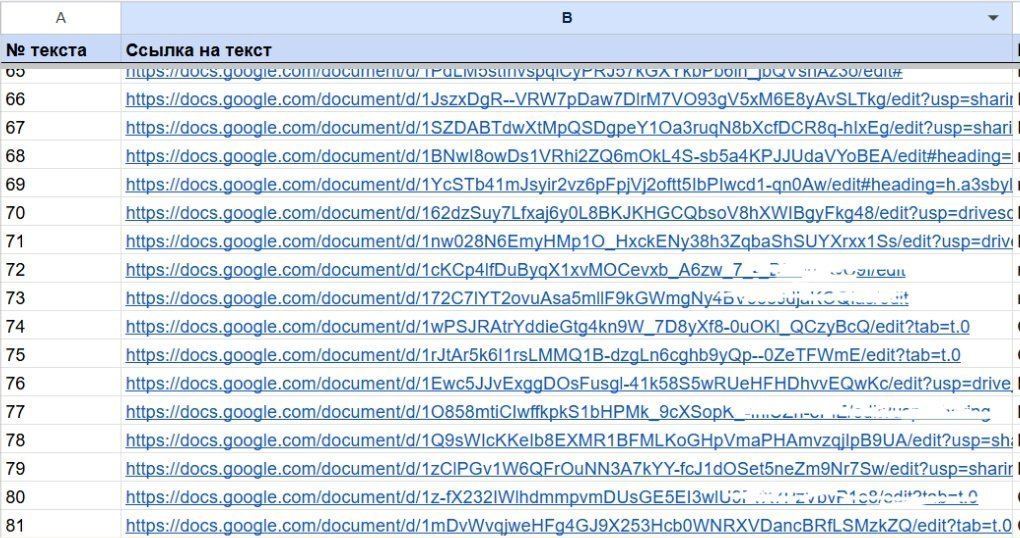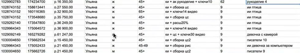 Это наша ручная аналитика, в которой заказчику виден номер текста, креатива, ЦА и т.д.