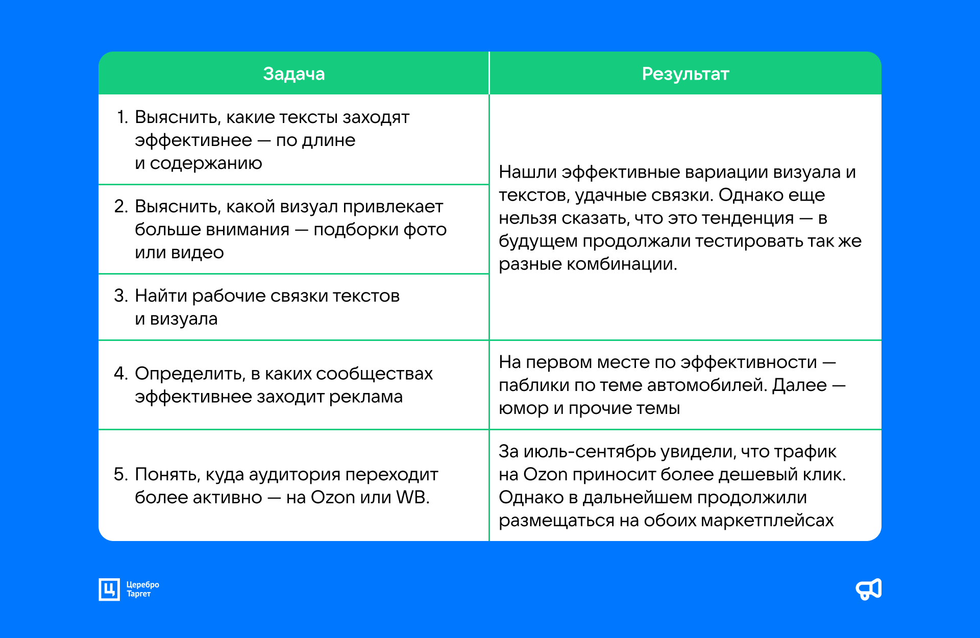 1. За 2 года закрыли ключевые потребности клиента — масштабировали запуски на сотни миллионов охвата с CPM меньше 100 рублей, забустили карточки товаров и продажи.
