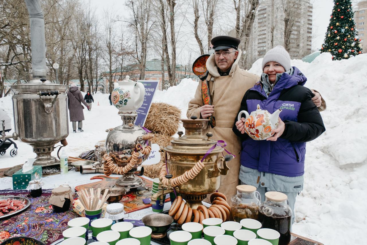 Параллельно привлекли чайного мастера: он топил самовары на дровах и угощал гостей горячим чаем. Так посетители могли согреться и весело провести время, пока ждали своей очереди на катание.
