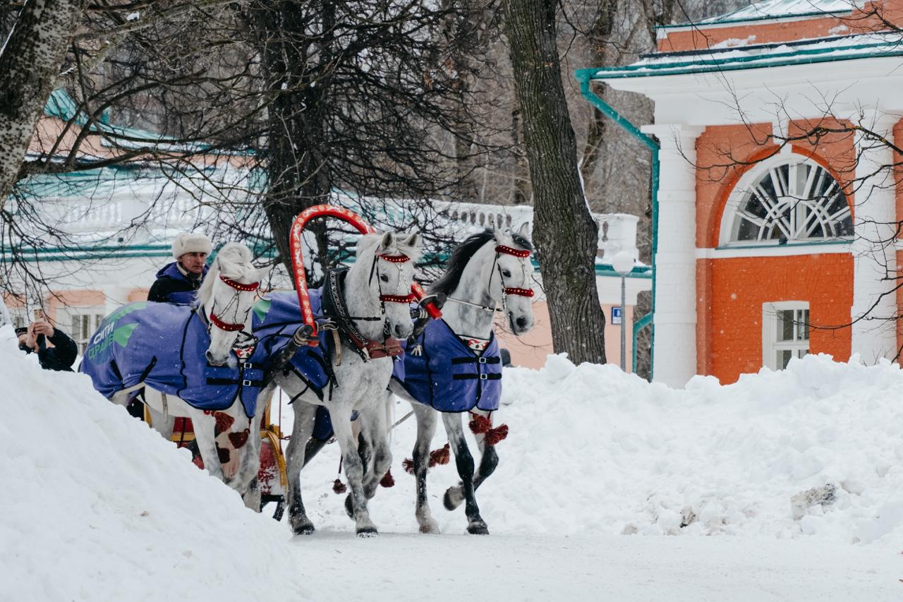 В качестве локации выбрали Воронцовский парк — на Масленицу там планировалась насыщенная праздничная программа. При этом парк сравнительно компактный: мы сознательно искали пространство, где можно организовать катание без чрезмерной нагрузки на лошадей.