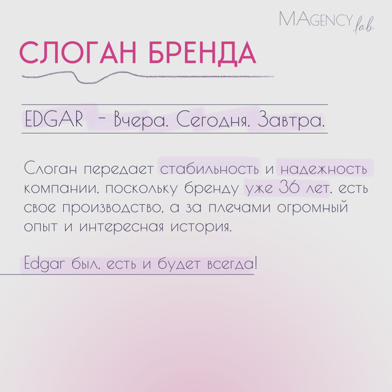 Что бы правильно донести ценности и философию бренда EDGAR, мы продумали
