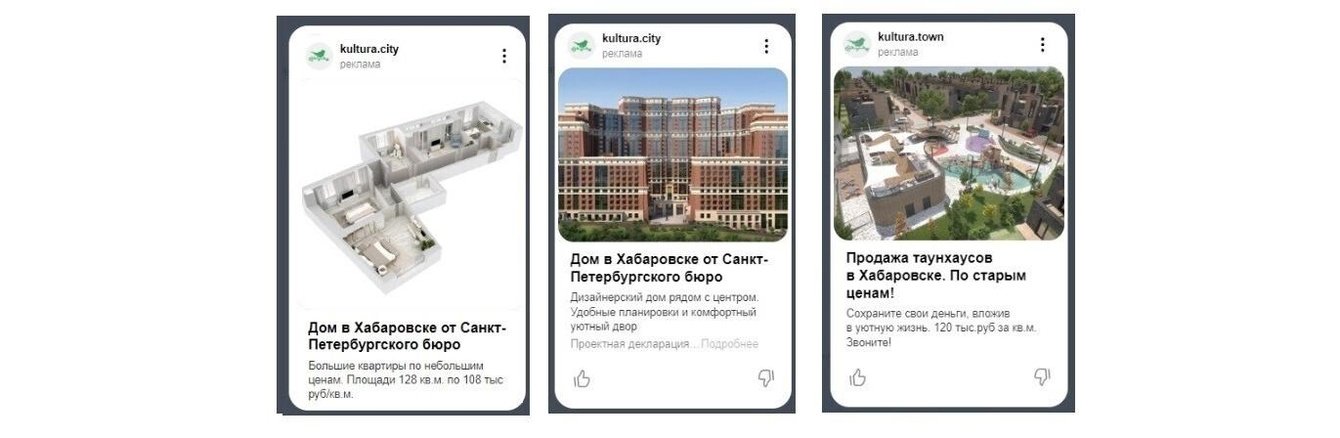 Для привлечения клиентов с других регионов использовали расширенный географический таргетинг. Эта настройка позволила показывать рекламу людям, живущим в других городах, но заинтересованным в покупке недвижимости в Хабаровске.