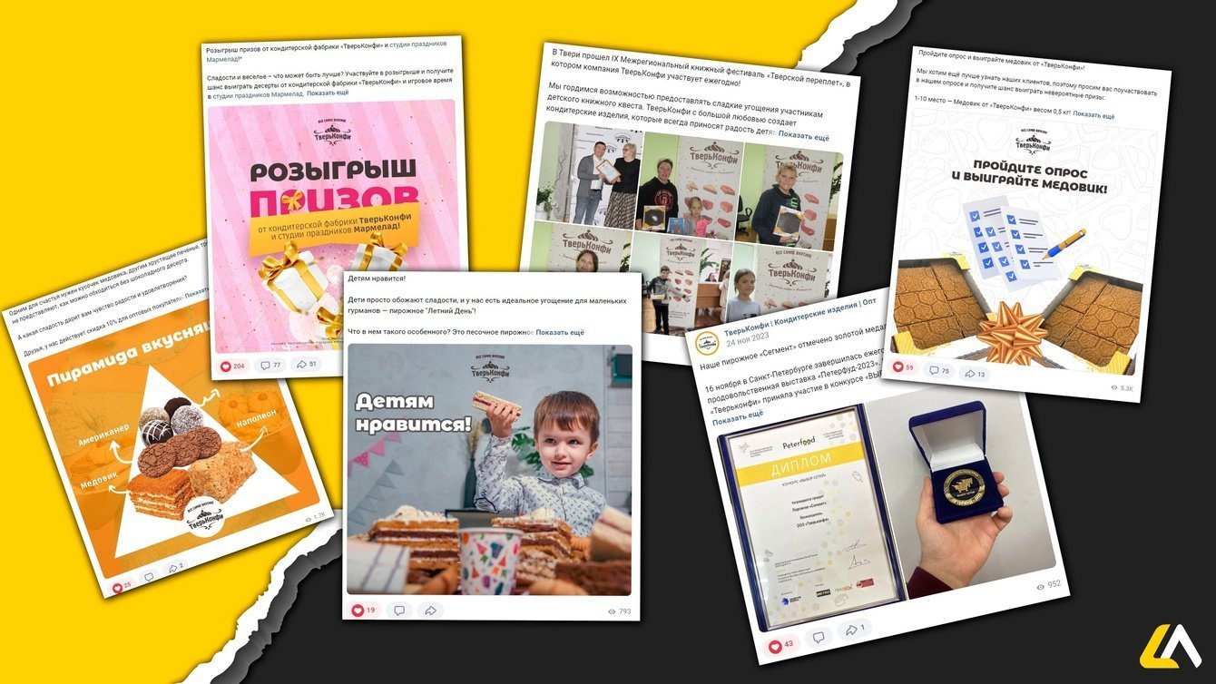 – Посты о продукции: продукция месяца, состав десертов, истории создания сладостей;